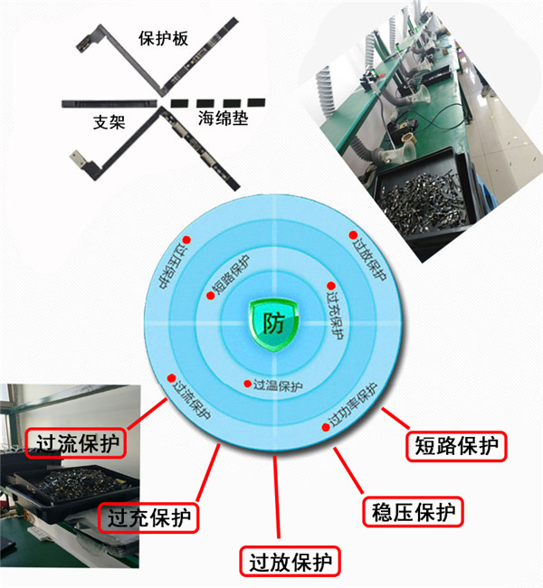 1:智能型內(nèi)置電池保護(hù)電路,具有防過(guò)充、過(guò)放、過(guò)流(短路)、過(guò)熱四重保護(hù)功能。