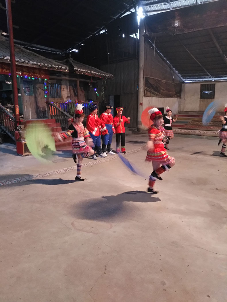 節(jié)目有:苗族姑娘歌舞、阿扁哥上刀山、竹竿舞;節(jié)目輕松歡快。
