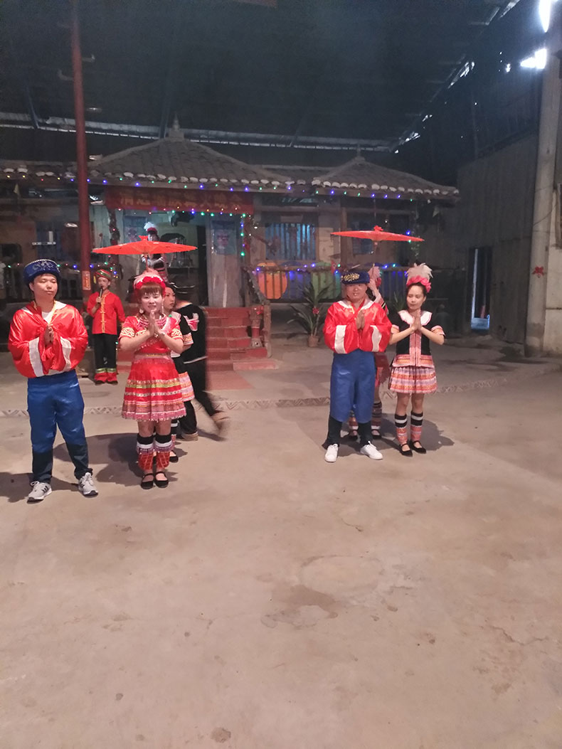 晚會(huì)中 最搞笑的是公司的兩位“阿貴哥”被漂亮的苗族姑娘看上了,做新郎拜堂成親;一片喜慶當(dāng)中,第