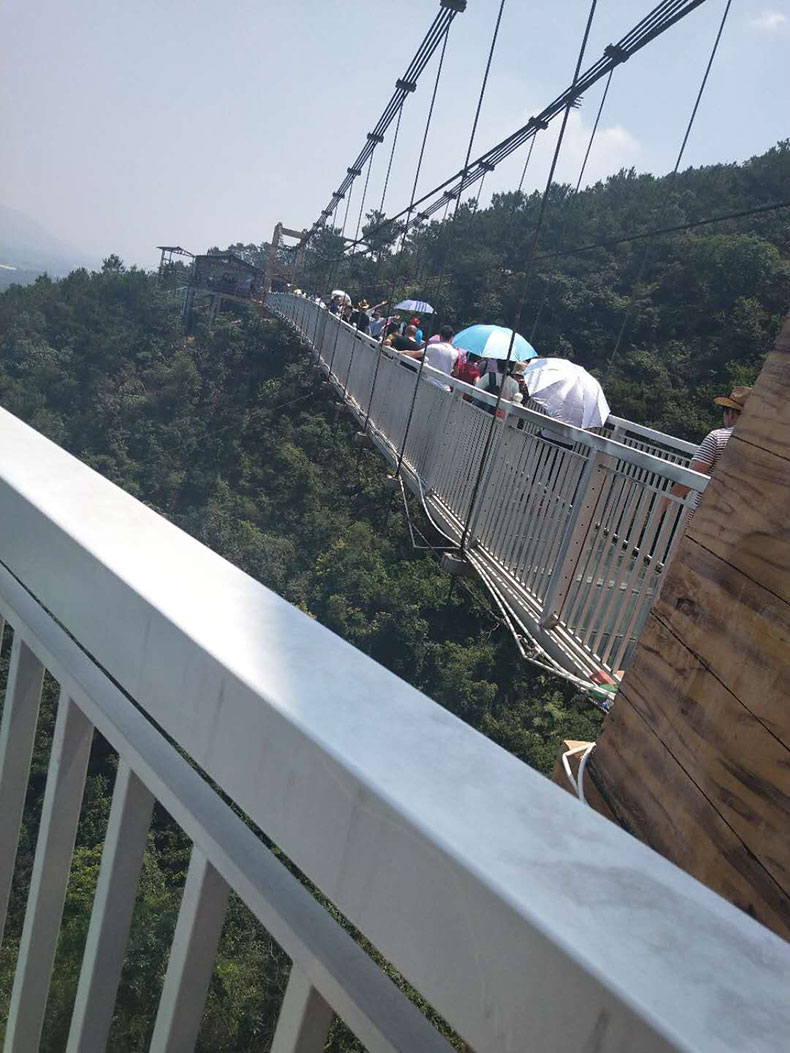 中廊橋全長接近200米,懸空離地180米左右。位于大帽山側(cè)山腰。