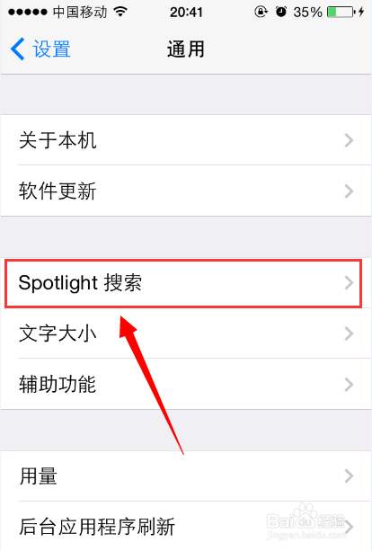 如果平時大家不怎么用到這個功能的話,建議可以關(guān)閉,點(diǎn)擊設(shè)置-通用-spotlight搜索關(guān)閉就可以了。
